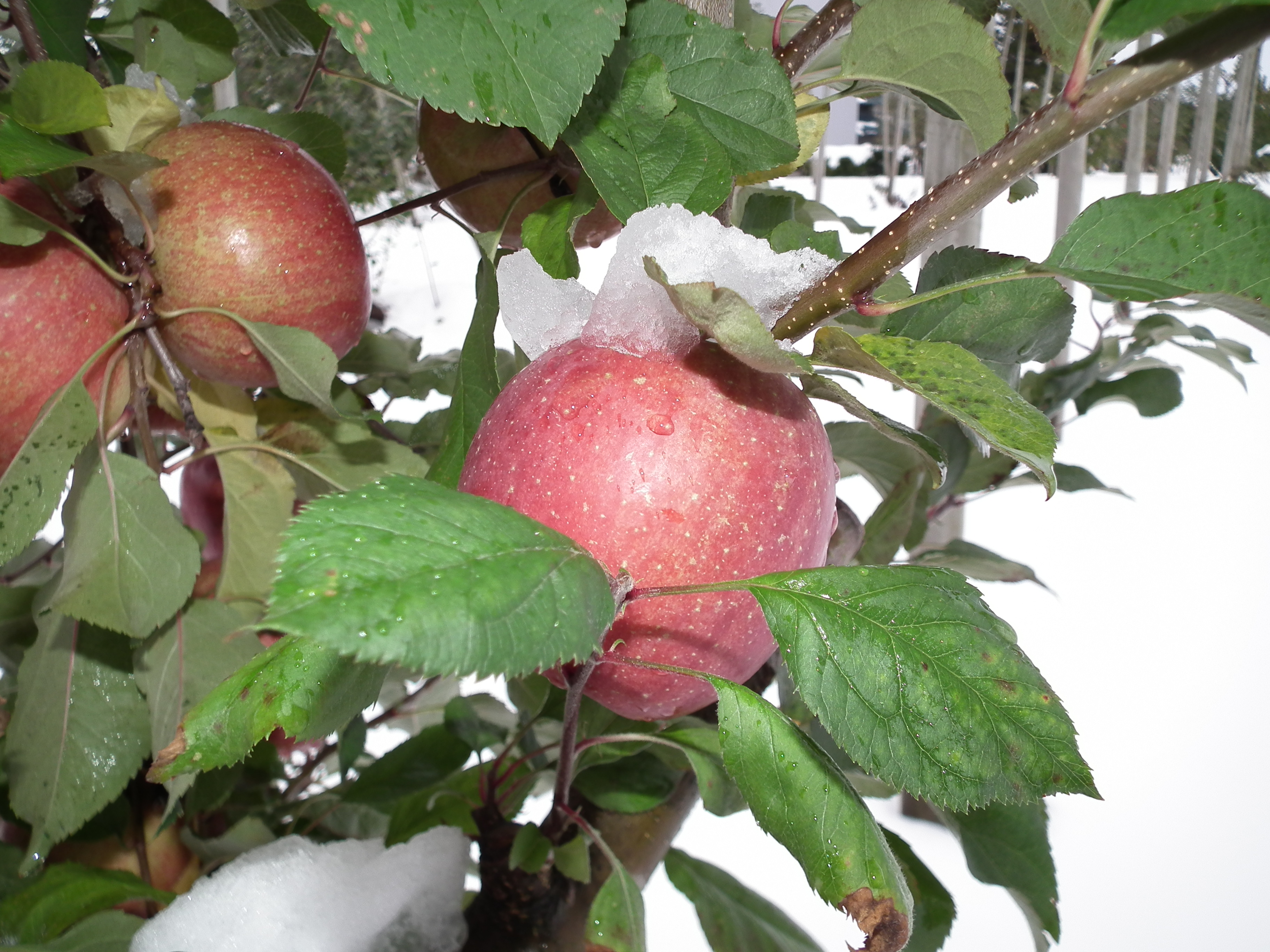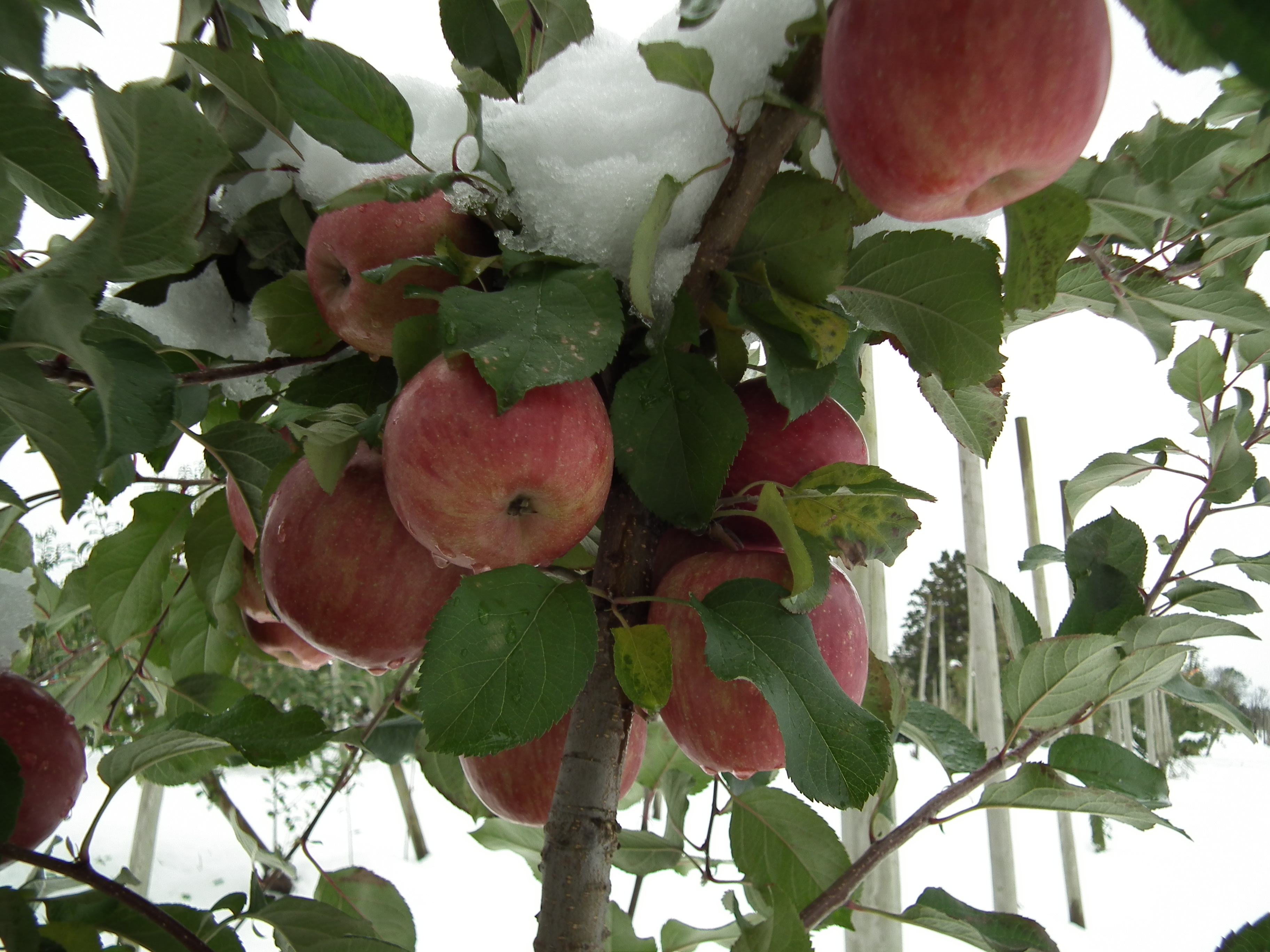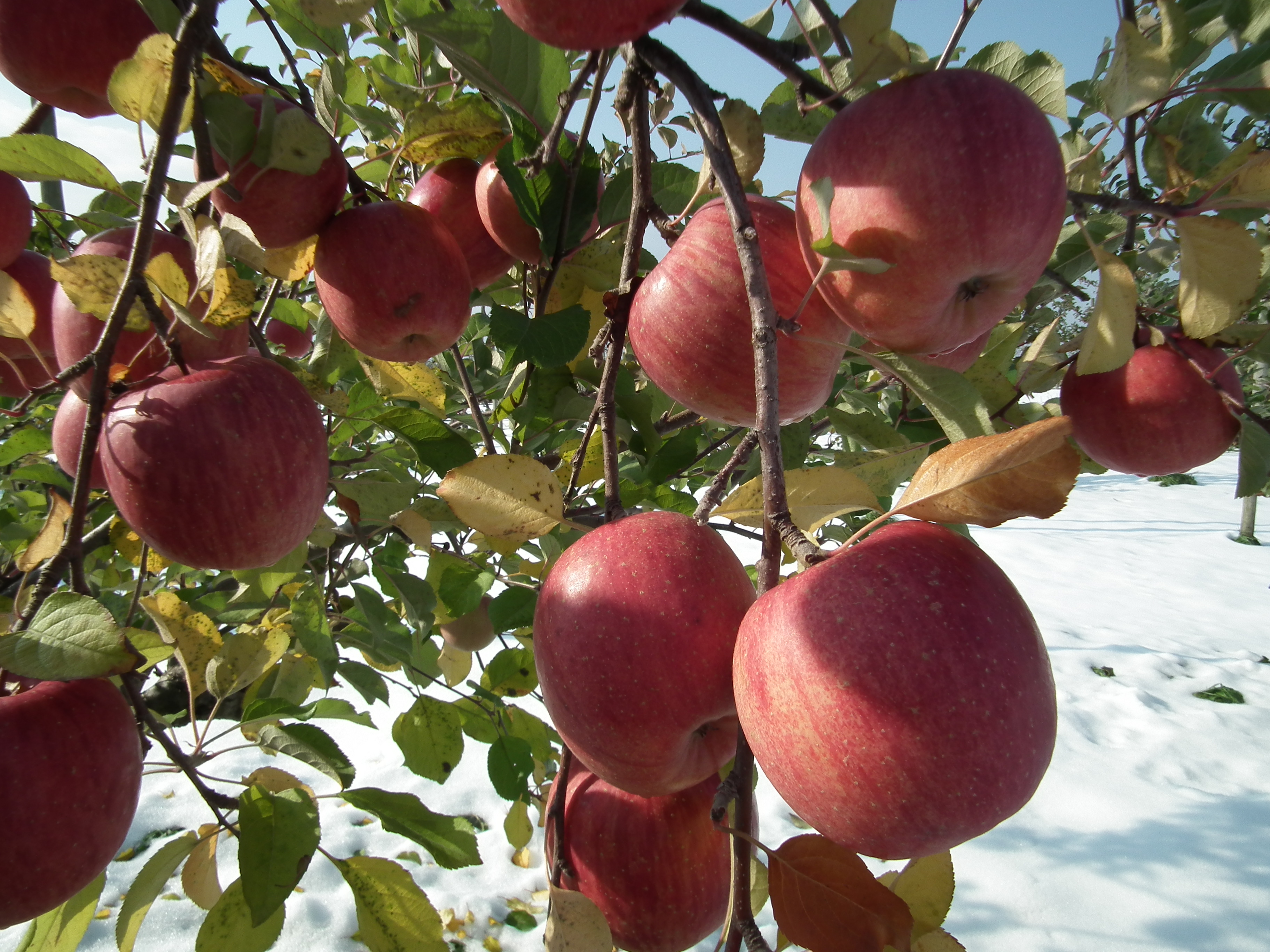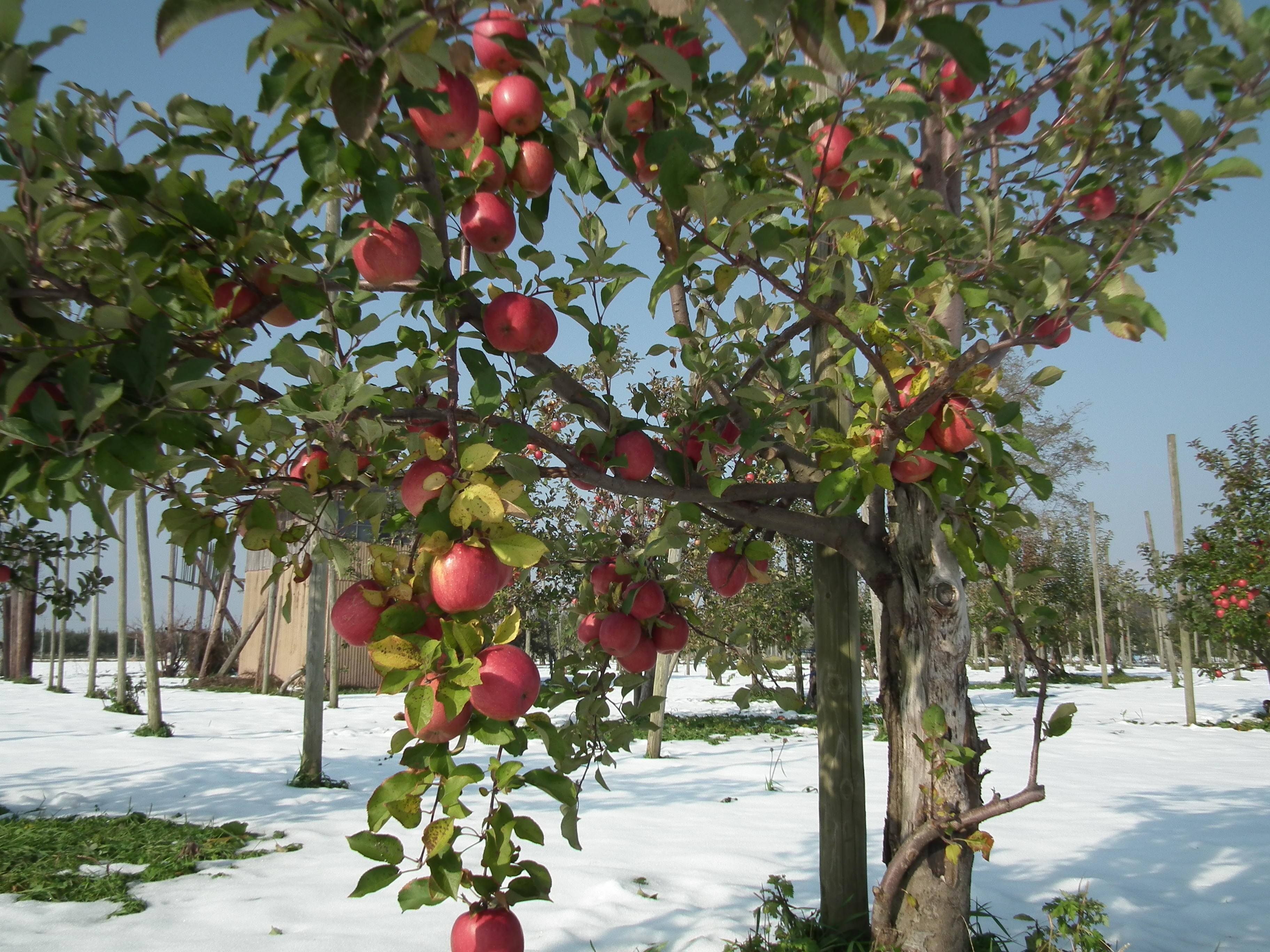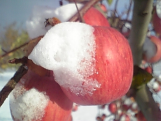 雪会いりんご写真ギャラリー 吉ざえもん農園の気まま日記20131113_畑の中の雪会いりんご(サンフジ) Twitter Facebook はてブ Pocket LINE Pinterest LinkedIn コピー 2014.11.17 吉ざえもん農園のサンフジ(雪会いりんご)の写真ギャラリー。 こんな風にサンフジと雪が出会って、ようやく雪会いりんごとなります。 例年ですと、このギャラリーのように、サンフジに雪が積もります。 雪会いりんご 雪会いりんご 関連投稿: 赤くなり始めたサンフジ|津軽平野のりんご 実ったりんごの枝につっかえ棒 りんごの弦廻し りんごの品種は枝(接ぎ木)で決まる