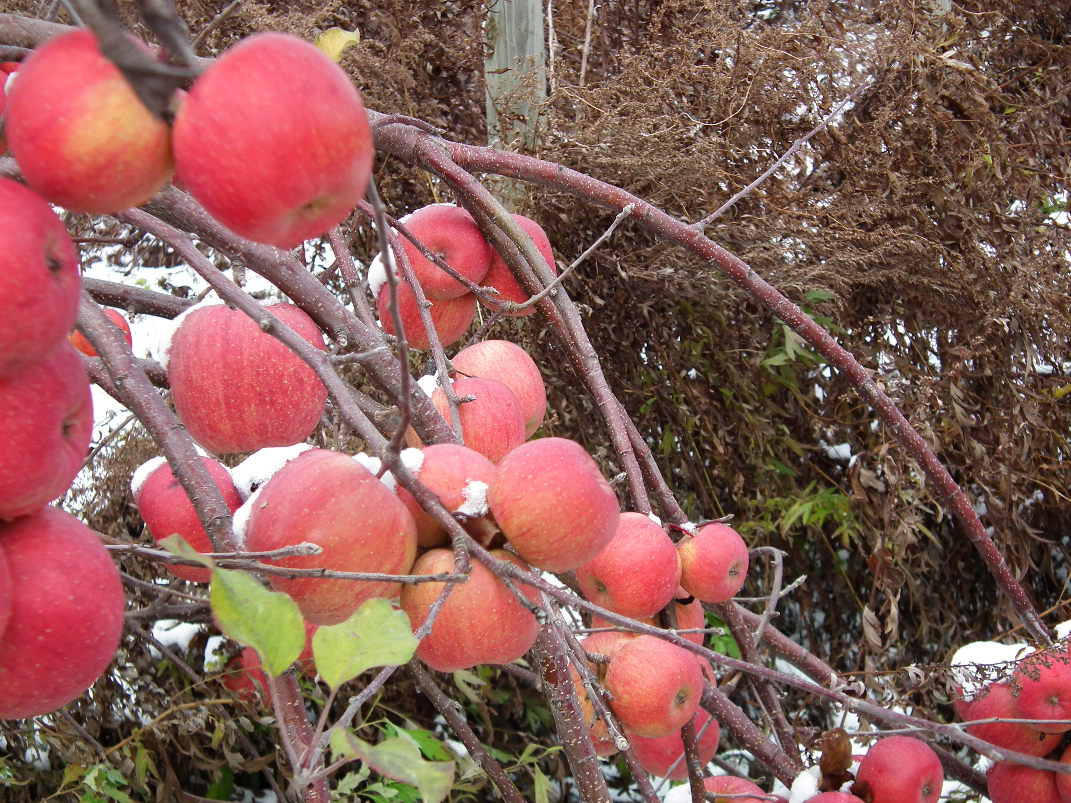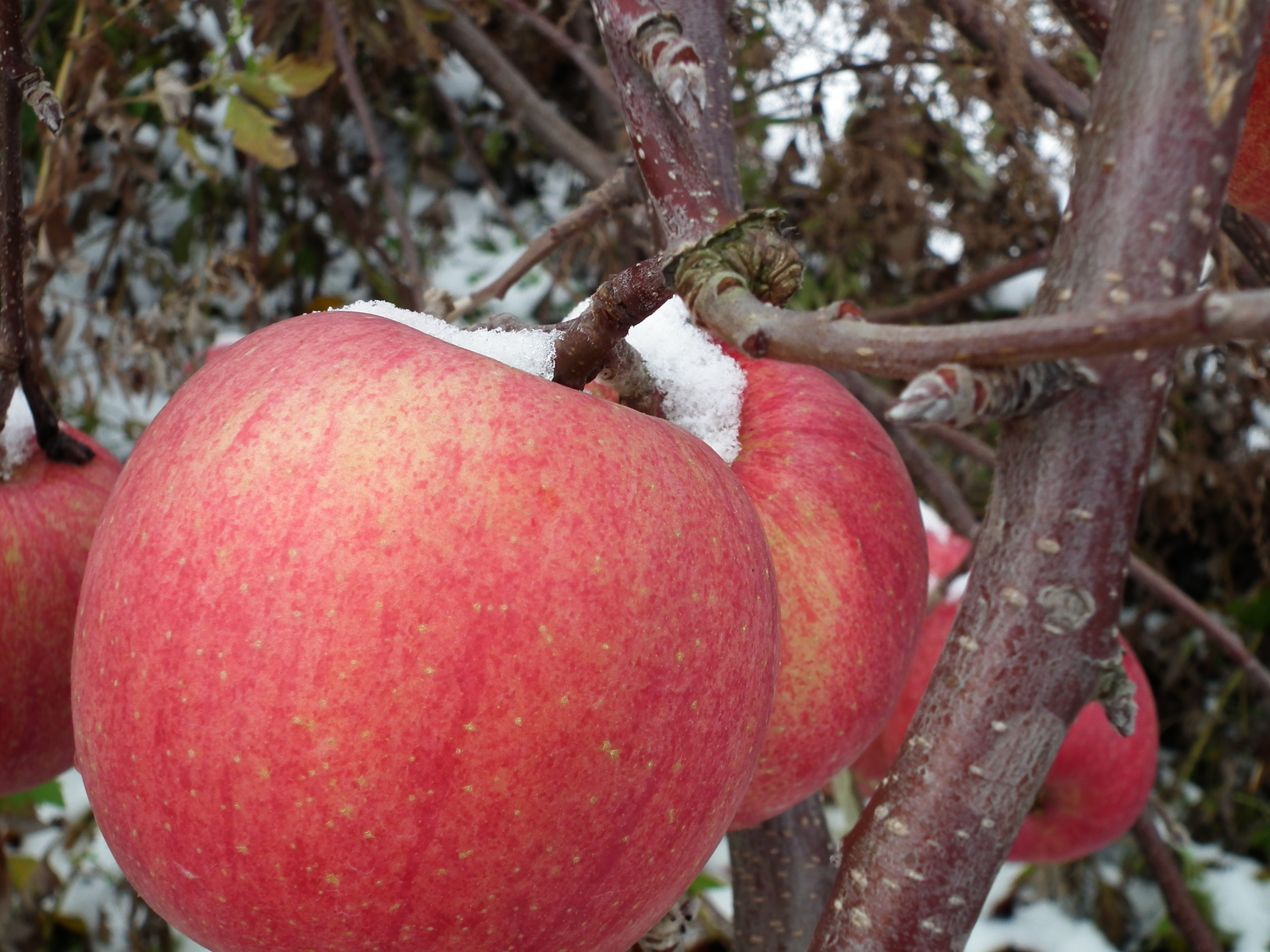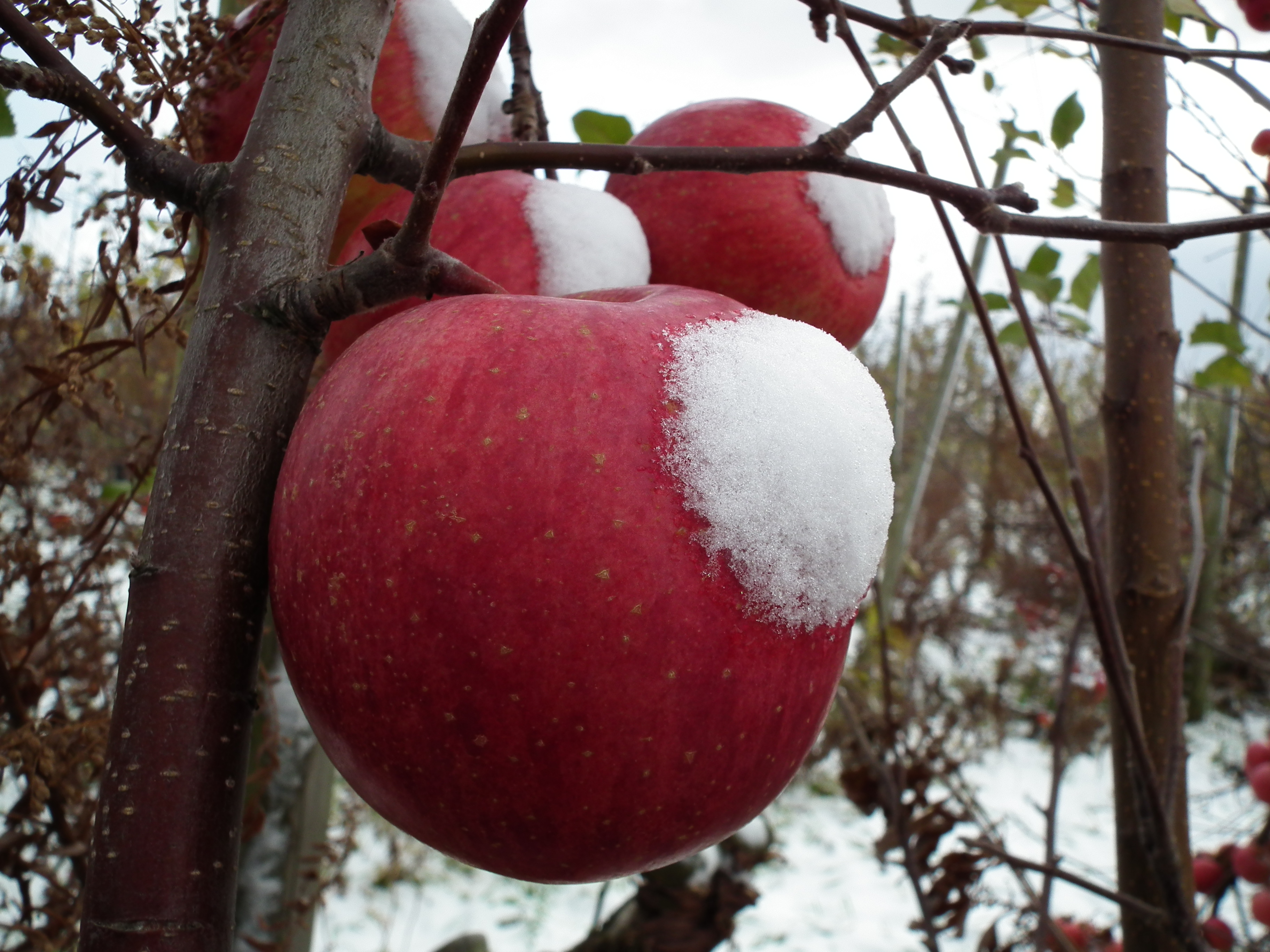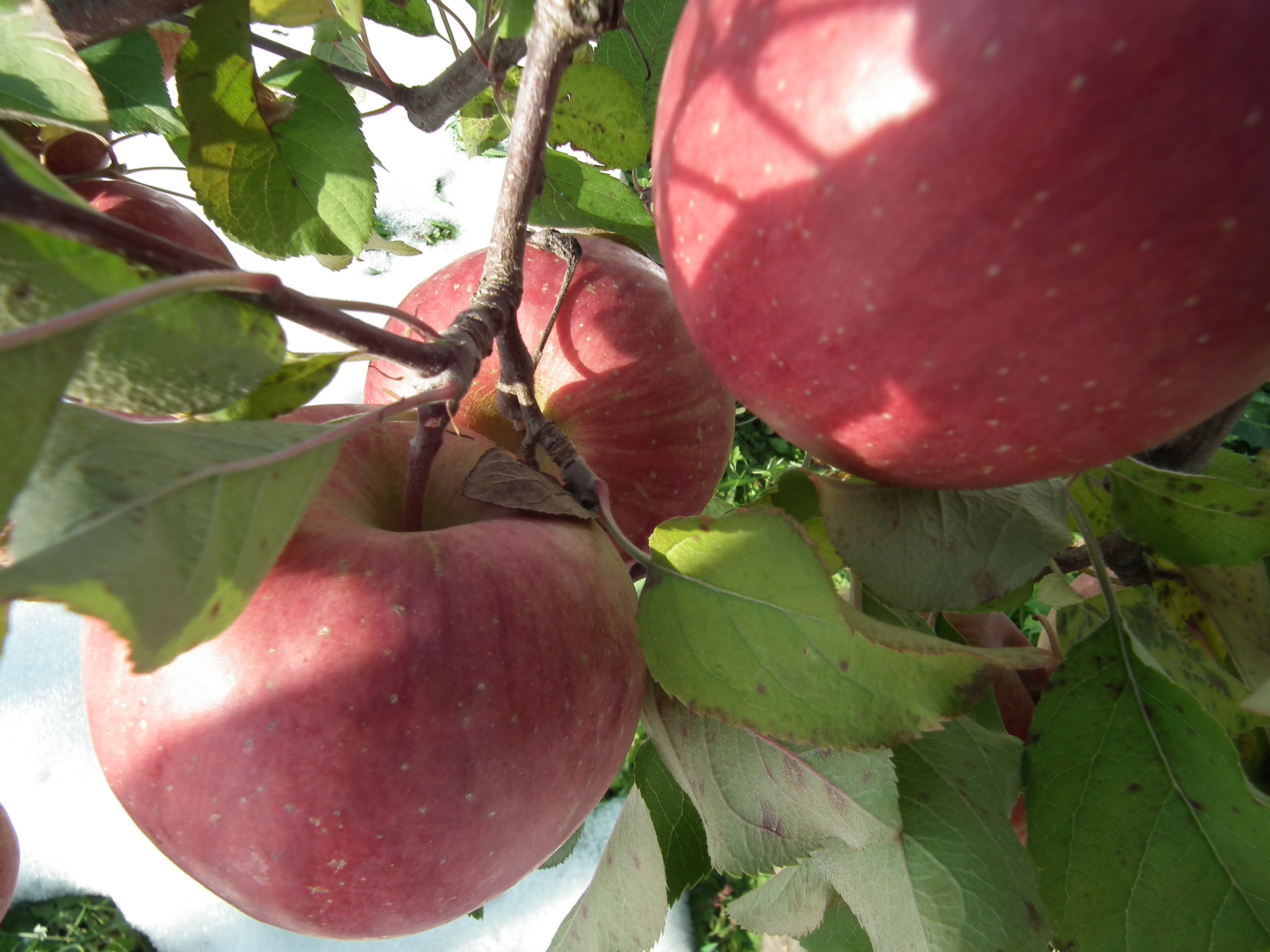 雪会いりんご写真ギャラリー 吉ざえもん農園の気まま日記20131113_畑の中の雪会いりんご(サンフジ) Twitter Facebook はてブ Pocket LINE Pinterest LinkedIn コピー 2014.11.17 吉ざえもん農園のサンフジ(雪会いりんご)の写真ギャラリー。 こんな風にサンフジと雪が出会って、ようやく雪会いりんごとなります。 例年ですと、このギャラリーのように、サンフジに雪が積もります。 雪会いりんご 雪会いりんご 関連投稿: 赤くなり始めたサンフジ|津軽平野のりんご 実ったりんごの枝につっかえ棒 りんごの弦廻し りんごの品種は枝(接ぎ木)で決まる