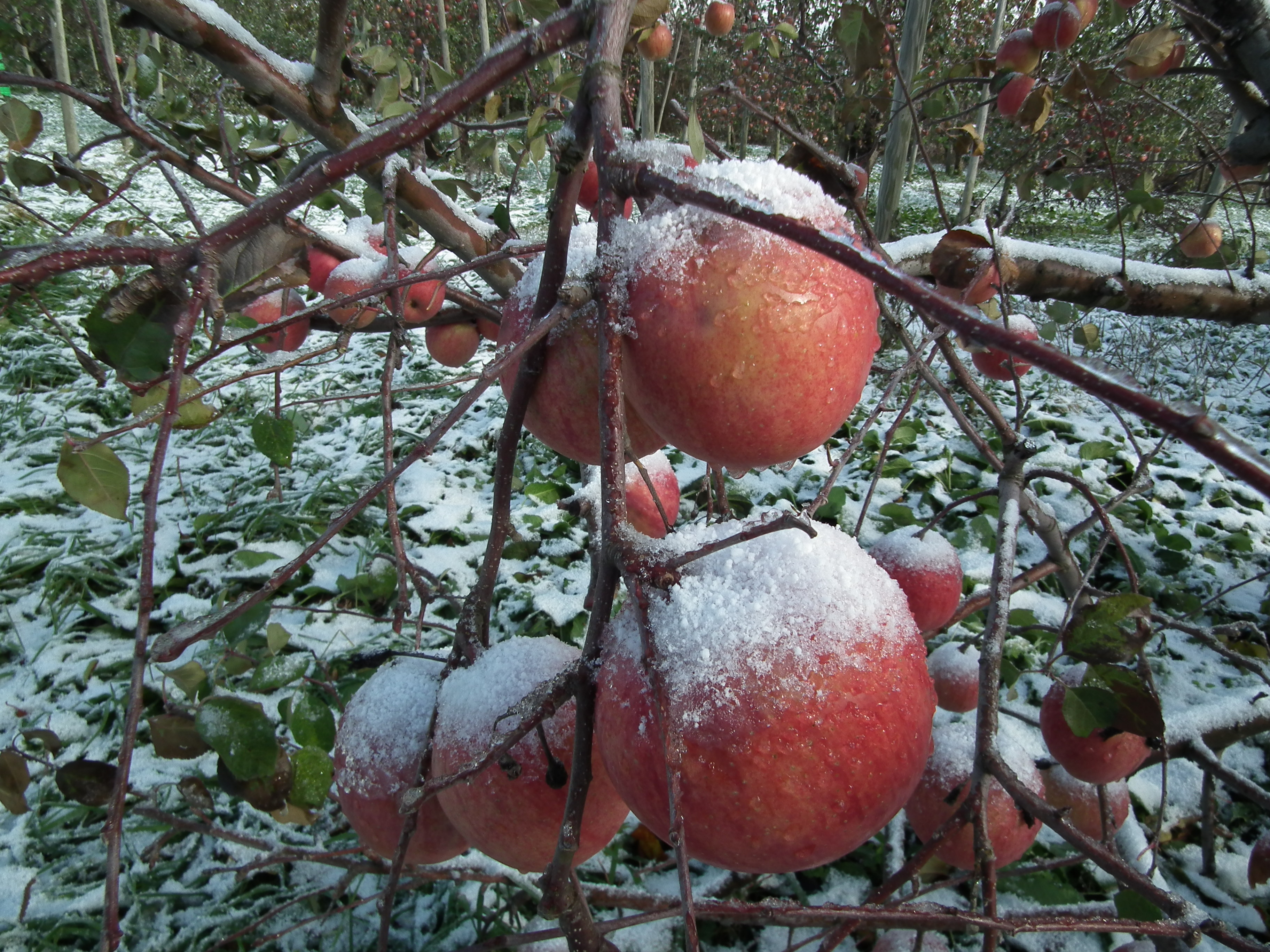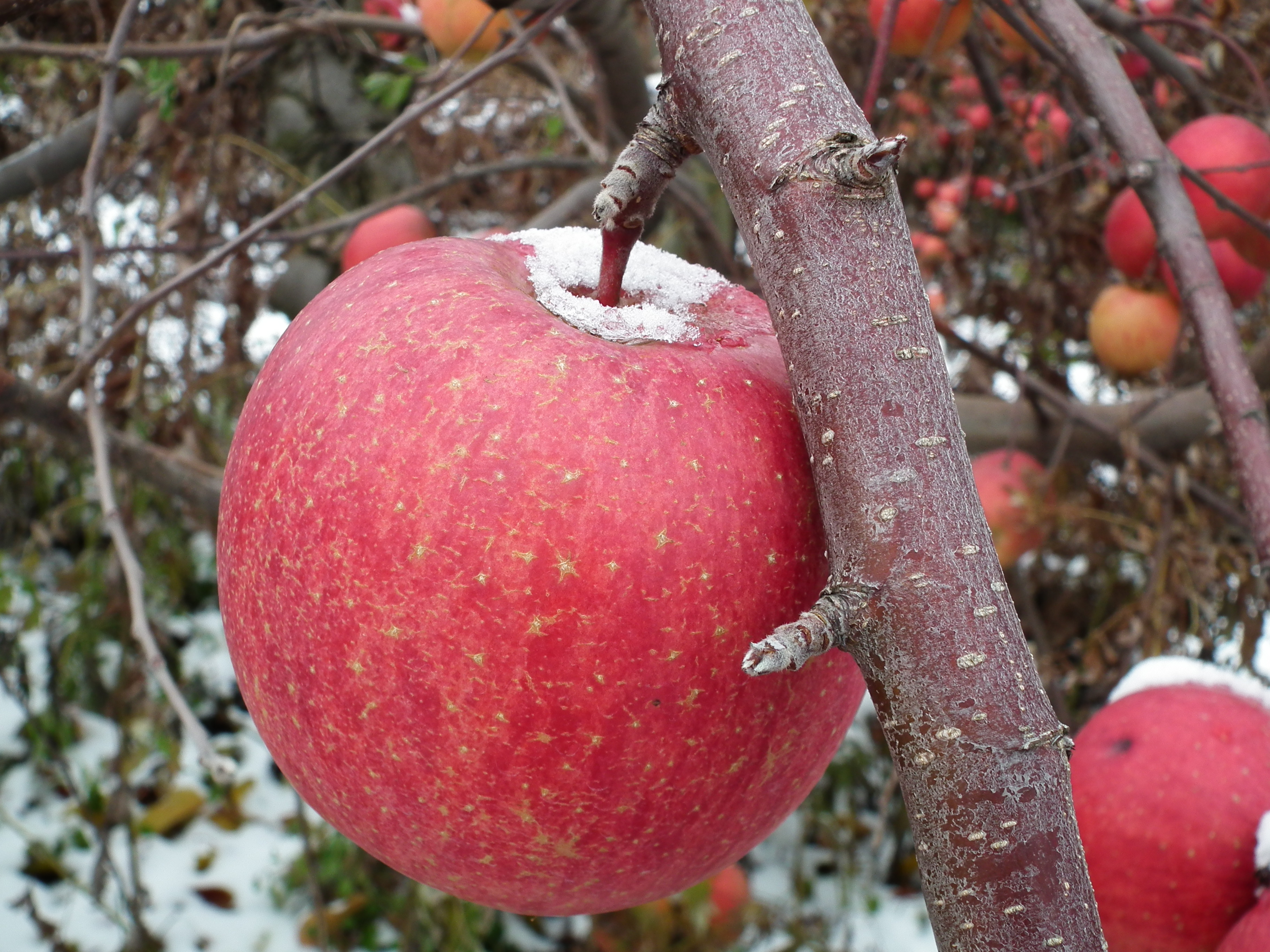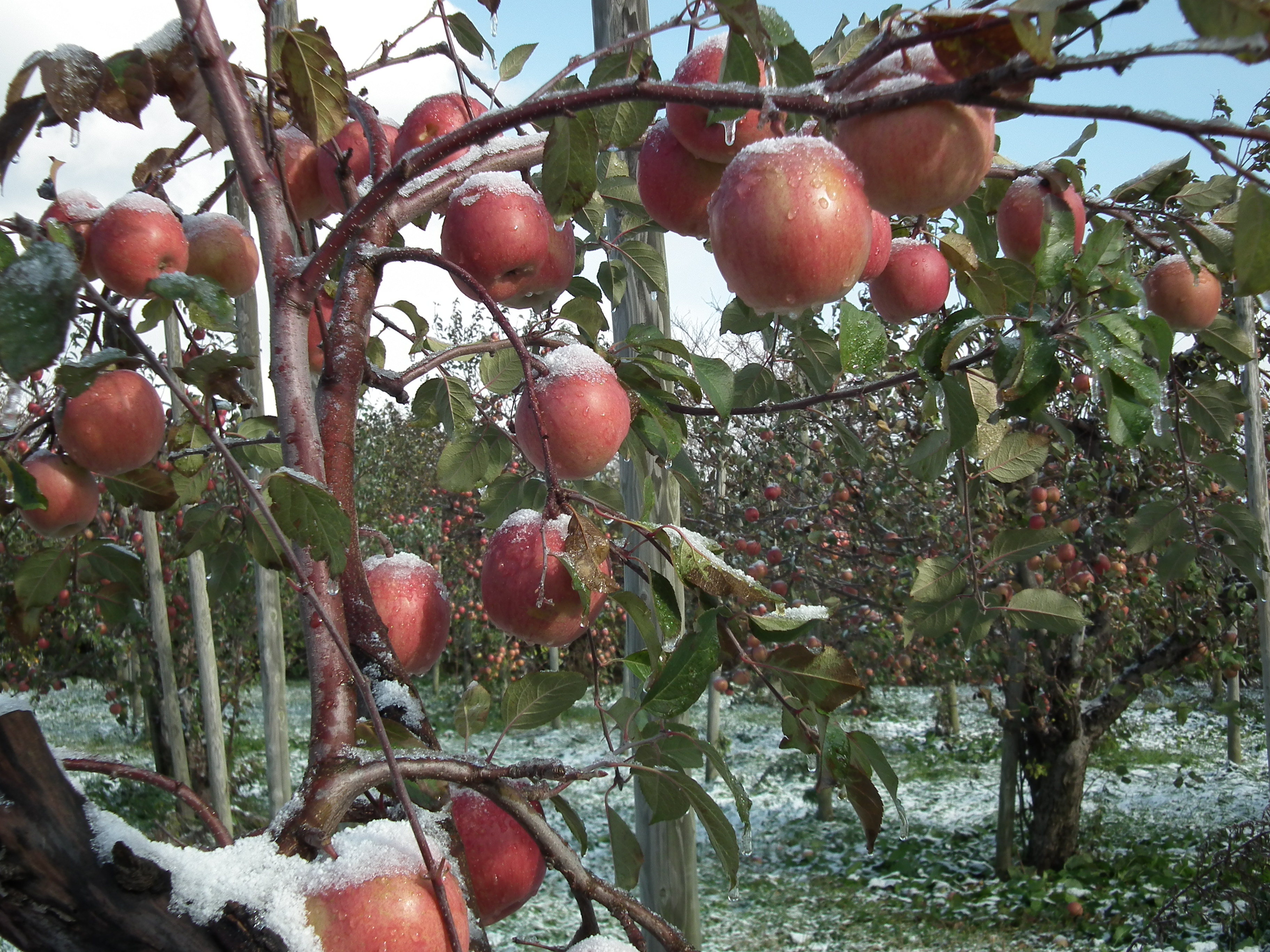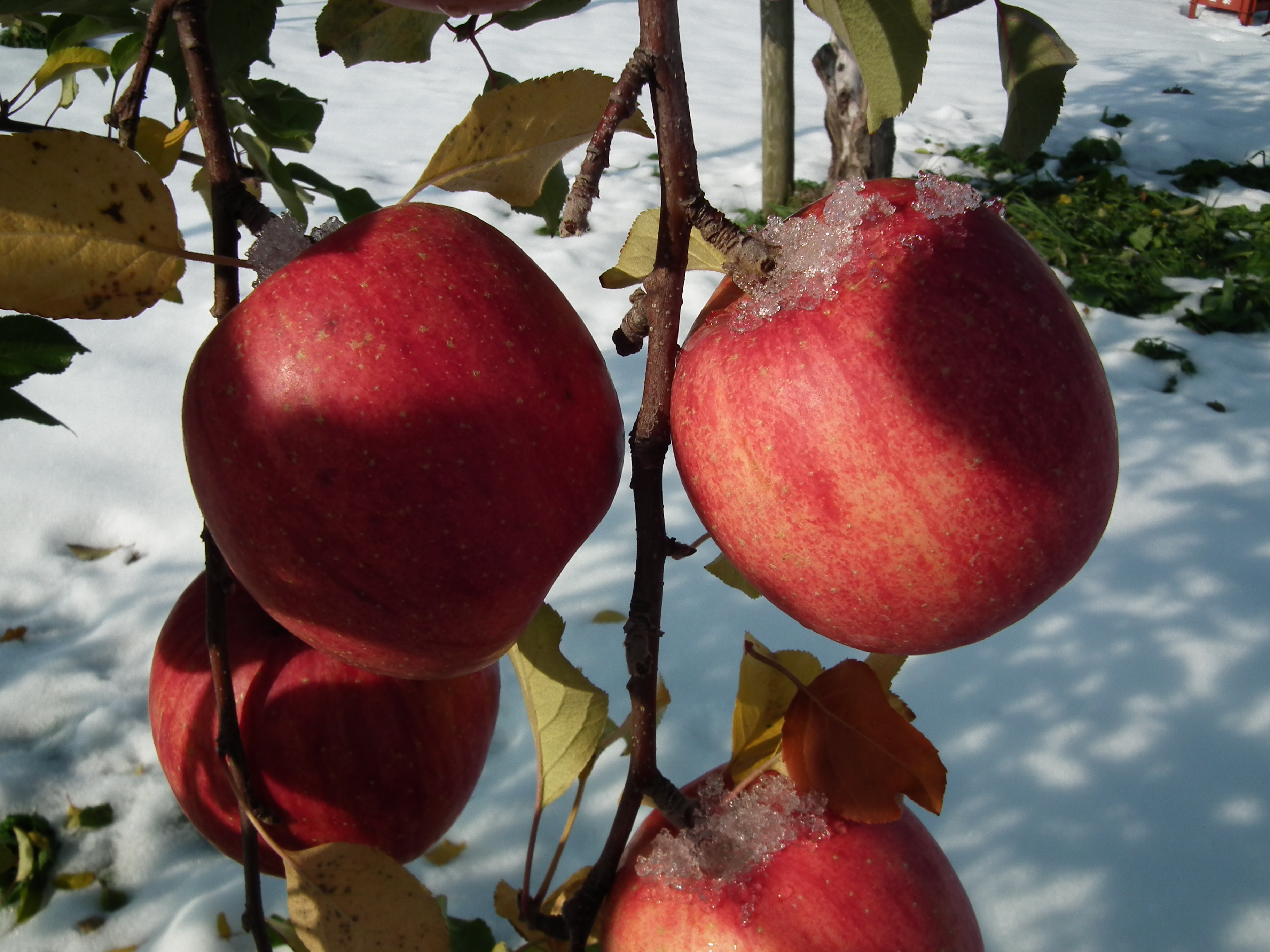 雪会いりんご写真ギャラリー 吉ざえもん農園の気まま日記20131113_畑の中の雪会いりんご(サンフジ) Twitter Facebook はてブ Pocket LINE Pinterest LinkedIn コピー 2014.11.17 吉ざえもん農園のサンフジ(雪会いりんご)の写真ギャラリー。 こんな風にサンフジと雪が出会って、ようやく雪会いりんごとなります。 例年ですと、このギャラリーのように、サンフジに雪が積もります。 雪会いりんご 雪会いりんご 関連投稿: 赤くなり始めたサンフジ|津軽平野のりんご 実ったりんごの枝につっかえ棒 りんごの弦廻し りんごの品種は枝(接ぎ木)で決まる