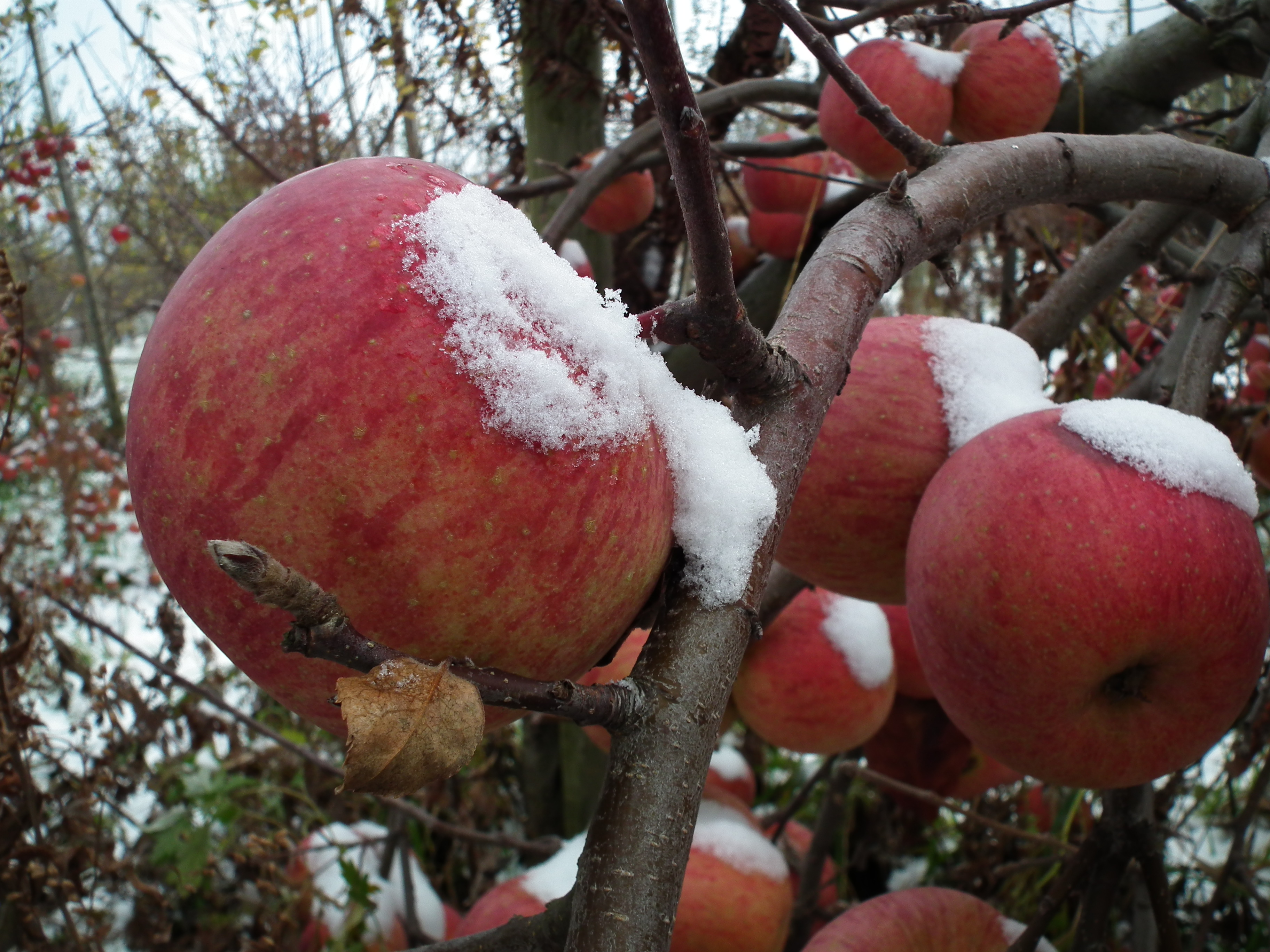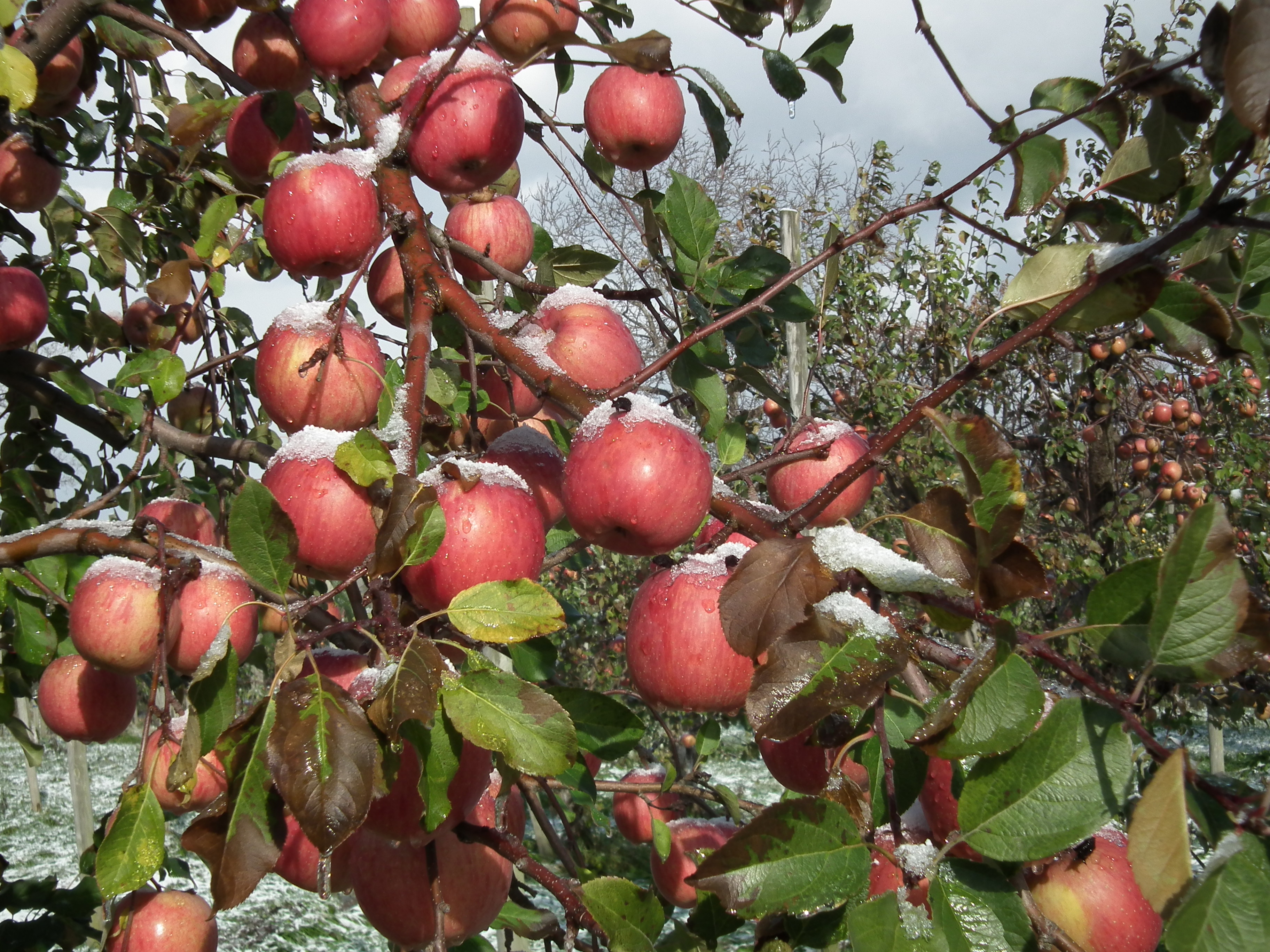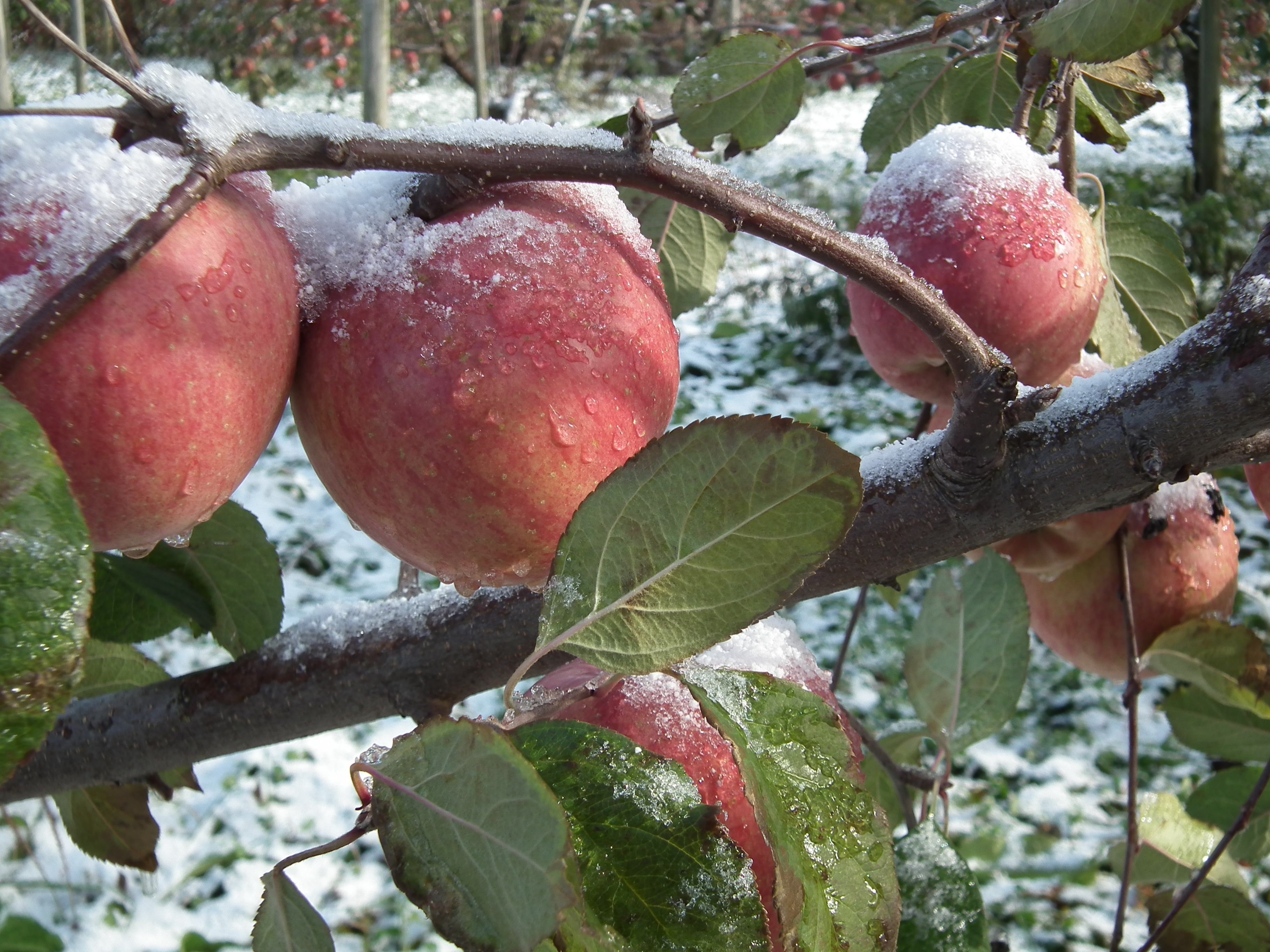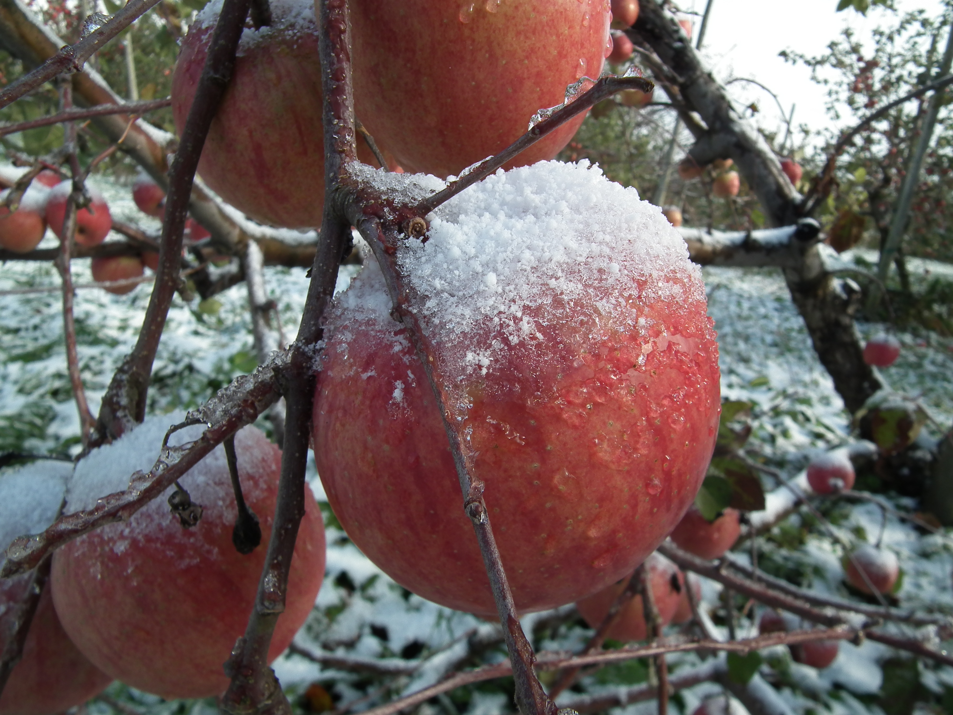 雪会いりんご写真ギャラリー 吉ざえもん農園の気まま日記20131113_畑の中の雪会いりんご(サンフジ) Twitter Facebook はてブ Pocket LINE Pinterest LinkedIn コピー 2014.11.17 吉ざえもん農園のサンフジ(雪会いりんご)の写真ギャラリー。 こんな風にサンフジと雪が出会って、ようやく雪会いりんごとなります。 例年ですと、このギャラリーのように、サンフジに雪が積もります。 雪会いりんご 雪会いりんご 関連投稿: 赤くなり始めたサンフジ|津軽平野のりんご 実ったりんごの枝につっかえ棒 りんごの弦廻し りんごの品種は枝(接ぎ木)で決まる